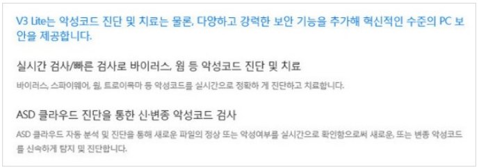 일반 v3무료백신 같은 경우에는 인터넷상에서 타인에게 피해를 주고 있는 각종 악성코드 등을 치료, 예방 하기위해서 만들어 져있고 빠른 대응을 위해서 다차원 분석 플랫폼을 사용한다고 합니다. 내용을 읽어보시면 몇몇 파일, 프로그램등이 기술, 평판 기반 기술로 검증되지 않을 것일경우 실행되지 못하도록 막아주는 것이죠.