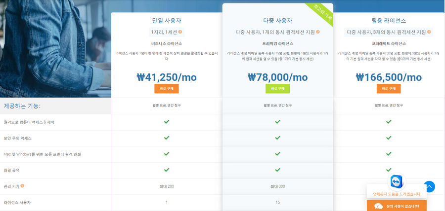 팀뷰어 다운로드 라이센스 확인