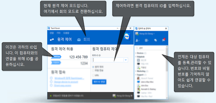 TeamViewer의 원격 데스크탑 접속 솔루션: 원격 컴퓨터에 연결하고 원격 지원 및 온라인 협업을 제공할 수 있습니다 ➤ 개인용은 무료입니다!