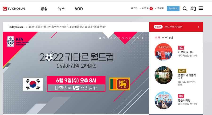 일단 인터넷 중계 시청의 경우에는 가장 쉬운 방법은 TV조선 온에어를 이용하는 것입니다. 고화질 같은 경우에는 로그인만 하시면 볼수 있다고 하니 편하게 회원가입을 하고 이용하시면 되겠습니다.